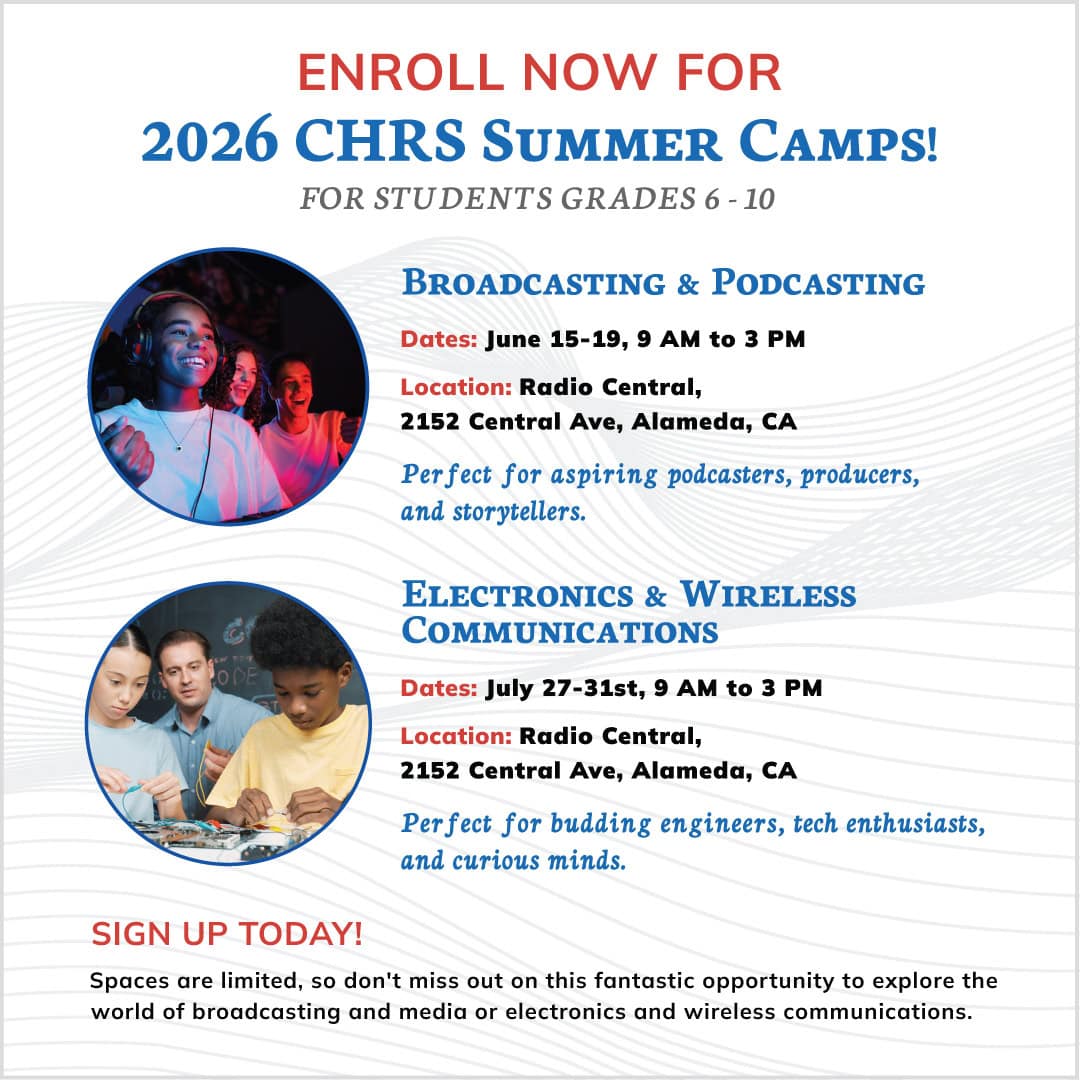 Learn more about CHRS programs: Society of Wireless Pioneers, Bay Area Radio Museum, Radio Hall of Fame, and Broadcast Legends.